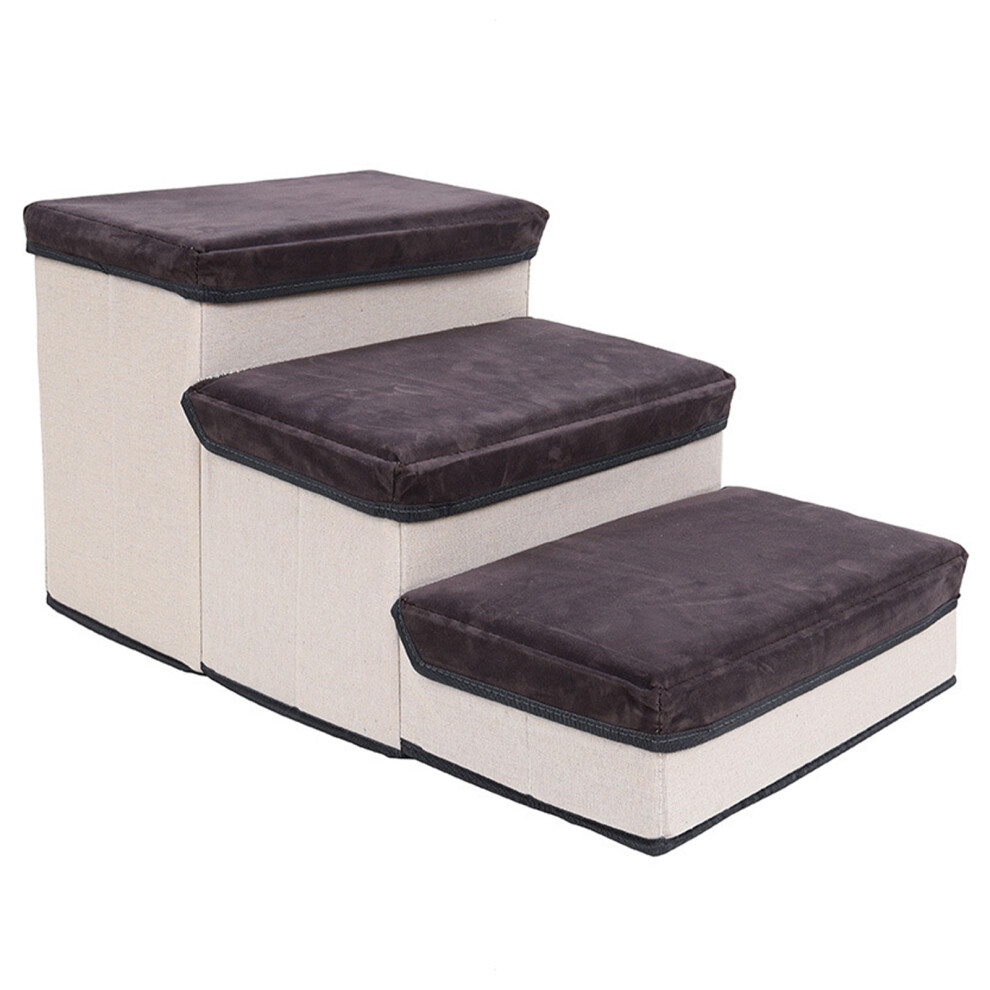 Foldable Pet Stairs Steps for Beds Sofas Linen Fabric Two Tier Dog House Storage Boxes