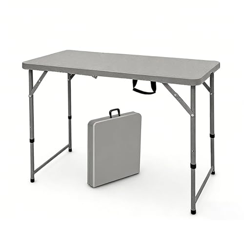 WBBML Picnic Table 122cm Foldable Plastic Table With Carrying Handle Outdoor Dining Table Hallway Kitchen(Grey)