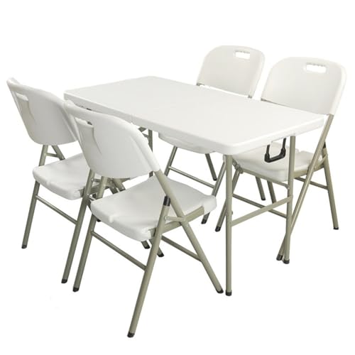 WBBML Picnic Table 122cm Foldable Plastic Table With Carrying Handle Outdoor Dining Table Hallway Kitchen(White)
