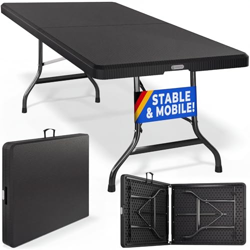 CASARIA® 6ft Folding Table, Spacious 180x75cm Plastic Tabletop & Sturdy Metal Frame | Foldable Portable Waterproof Easy Assembly | Buffet Picnic Party BBQ Camping Indoor Outdoor | Black Rattan Look