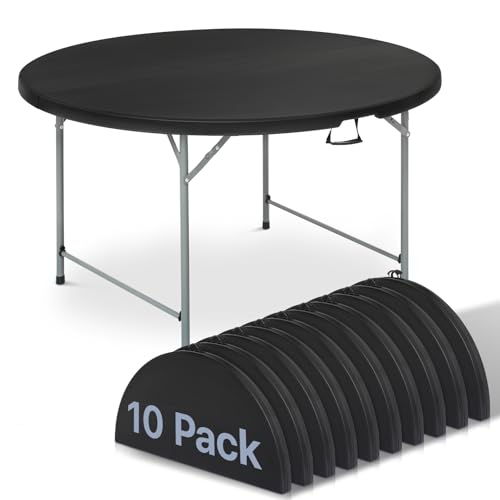 48" Round Folding Table, 4 Feet Foldable Plastic Table Dining Card for Indoor Outdoor Wedding Party, Black, 10 Pack
