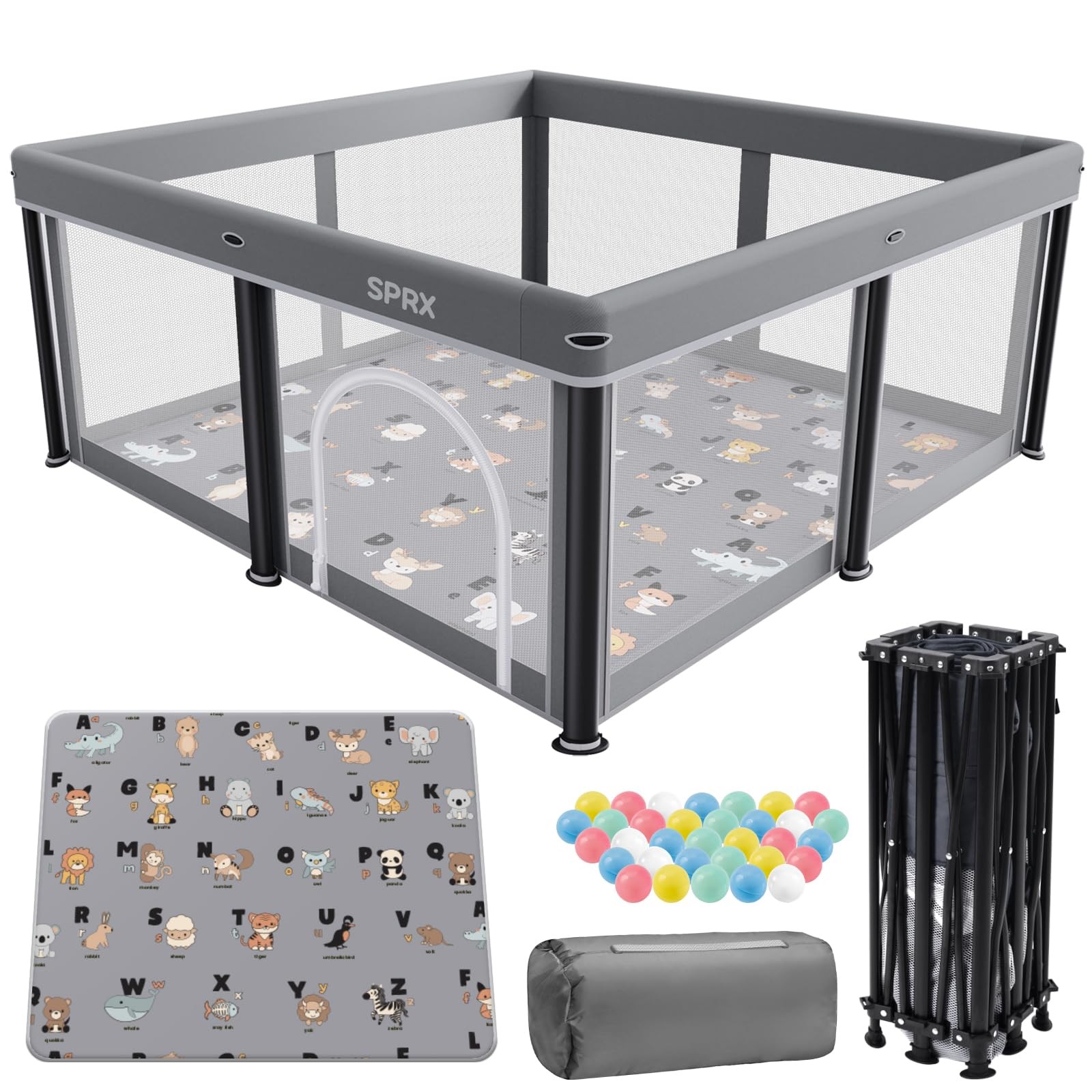 Lexixi Ibao Foldable Baby Playpen, 50"50" Extra Large Collapsible Playpen for Babies and Toddlers, Indoor Outdoor Activity Center with Fence, Grey