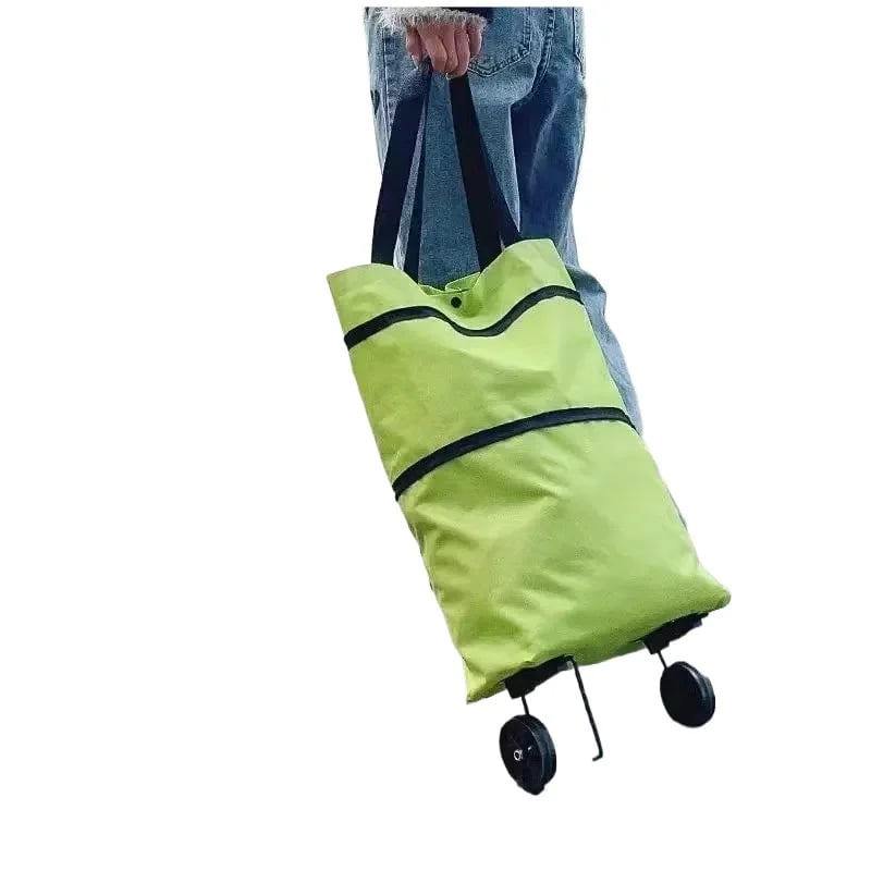 Foldable Shopping Cart Collapsible Trolley Bags Shopping Bags with Wheels Green