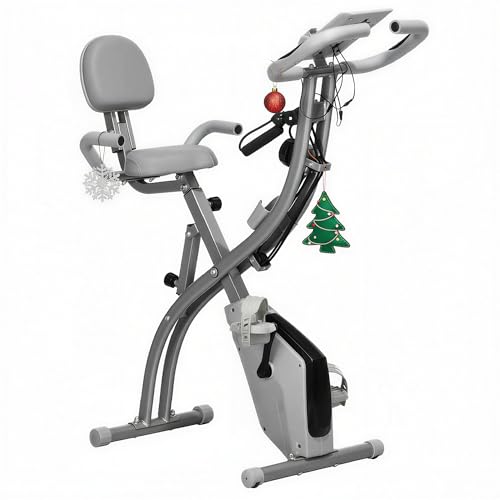 Folding Exercise Bike with 10-Level Adjustable Magnetic Resistance | Upright and Recumbent Foldable Stationary Bike is The Perfect Workout Bike for Home Use for Men, Women (Grey)