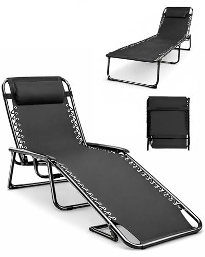 Grand patio Foldable Sun Lounger, Reclining Garden Chair, Aluminium Camping Chairs, Adjustable 6 Position High Backrest, Deck Chair for Garten, Outdoor, Poolside (Black)