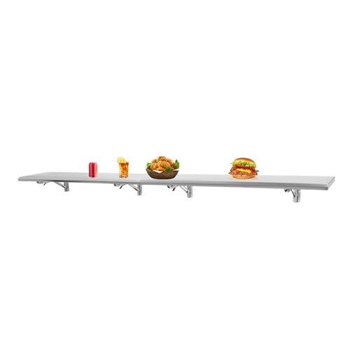 RABEEXP Folding Serving Food Shelf 96“x12”, Wall Mounted Foldable Table for Small Spaces, Kitchen, Restaurant, Garage, Laundry, Concession Windows, 132 lbs, Silver (244x30.5x3cm/96x12x1.2 inch)