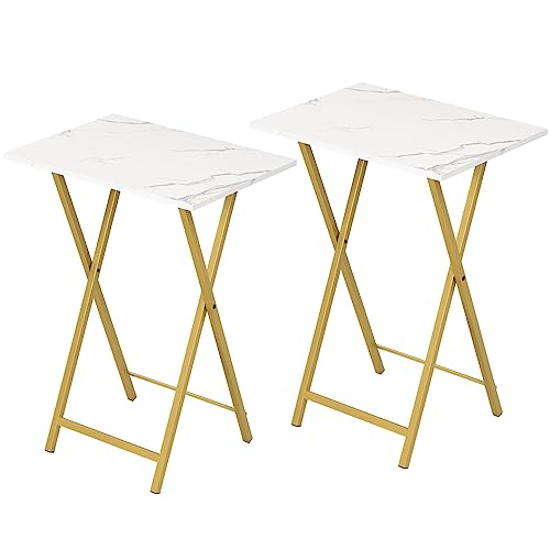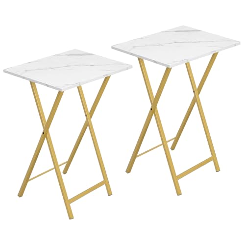 HOOBRO Folding Tables 2 Set, TV Tables for Eating Foldable, TV Tray Table, Small Sofa Laptop Dinner Table for Small Space, Metal Frame, Marble and Gold EDM25BZ01
