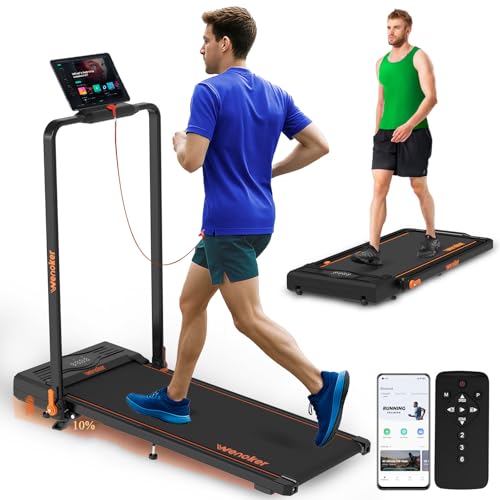 UREVO 2 in 1 Treadmills for Home Foldable, Walking Pad with APP Control, 1-10 km/h Under Desk Treadmill with Double Shock Absorbent, Remote Control & LED Display