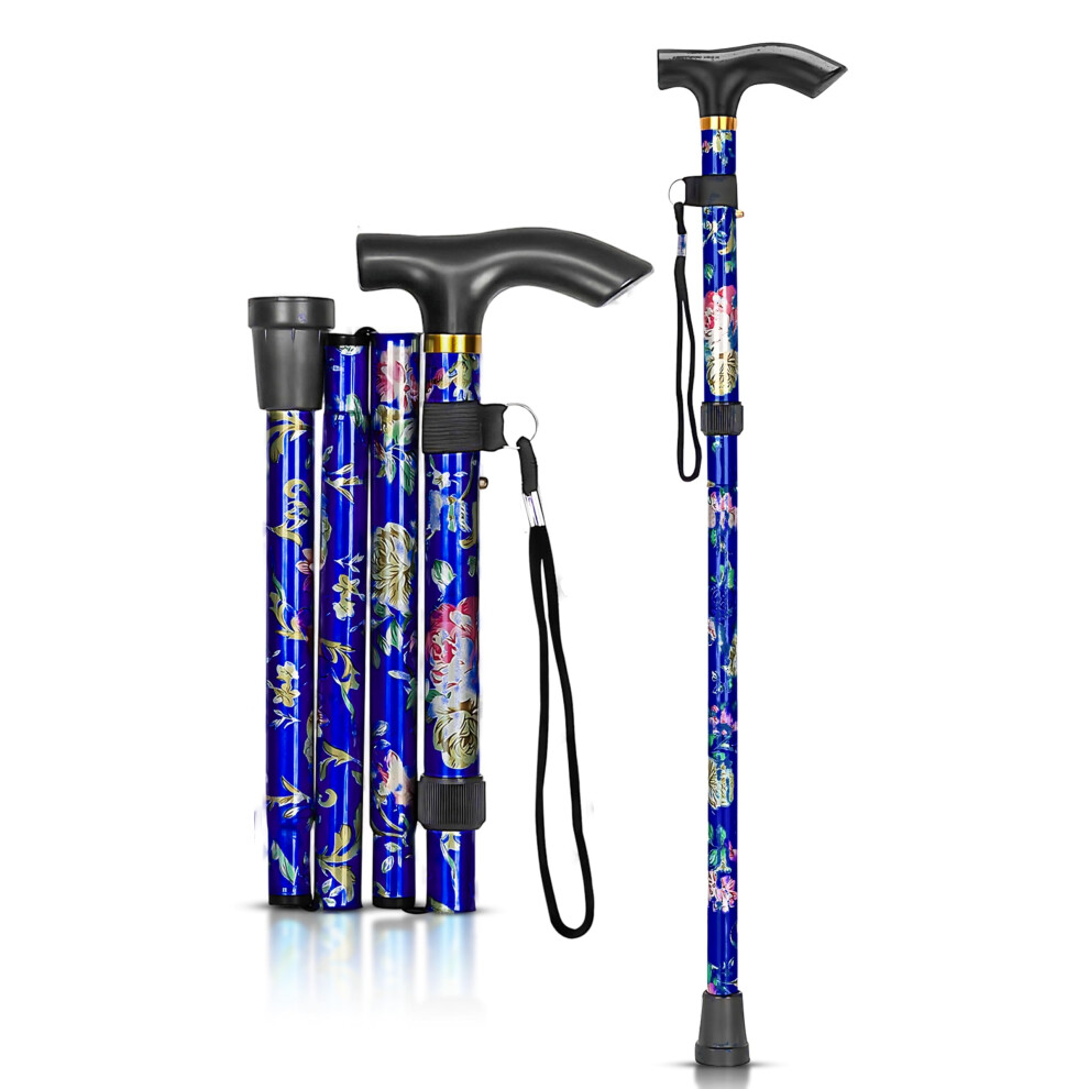 supregear Walking Stick - Adjustable Folding Walking Sticks for Women and Men - Lightweight Portable Collapsible Balancing Aid - Foldable Travel Cane for Ladies Elderly Adults, Blue