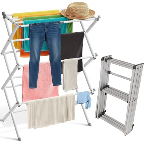 Crystals 3 Tier Foldable Clothes Airer, Folding Clothes Horse, Clothes Drying Rack, Non-Slip Feet Indoor/Outdoor, Laundry Clothes Rack, Washing Line Airer Drying Rack (Off White)
