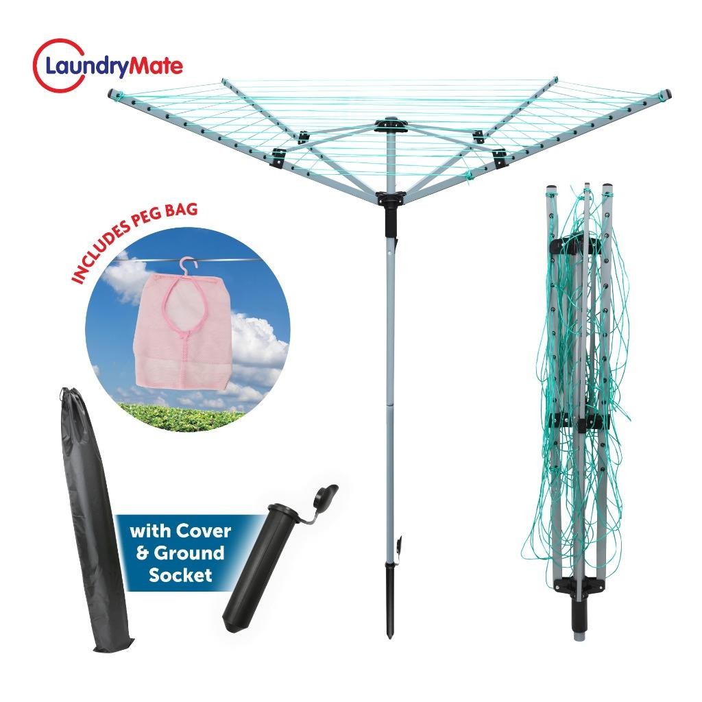 KCT 4 ARM ROTARY CLOTHES AIRER WITH COVER 50M DRYING AREA FOLDABLE WASHING LINE