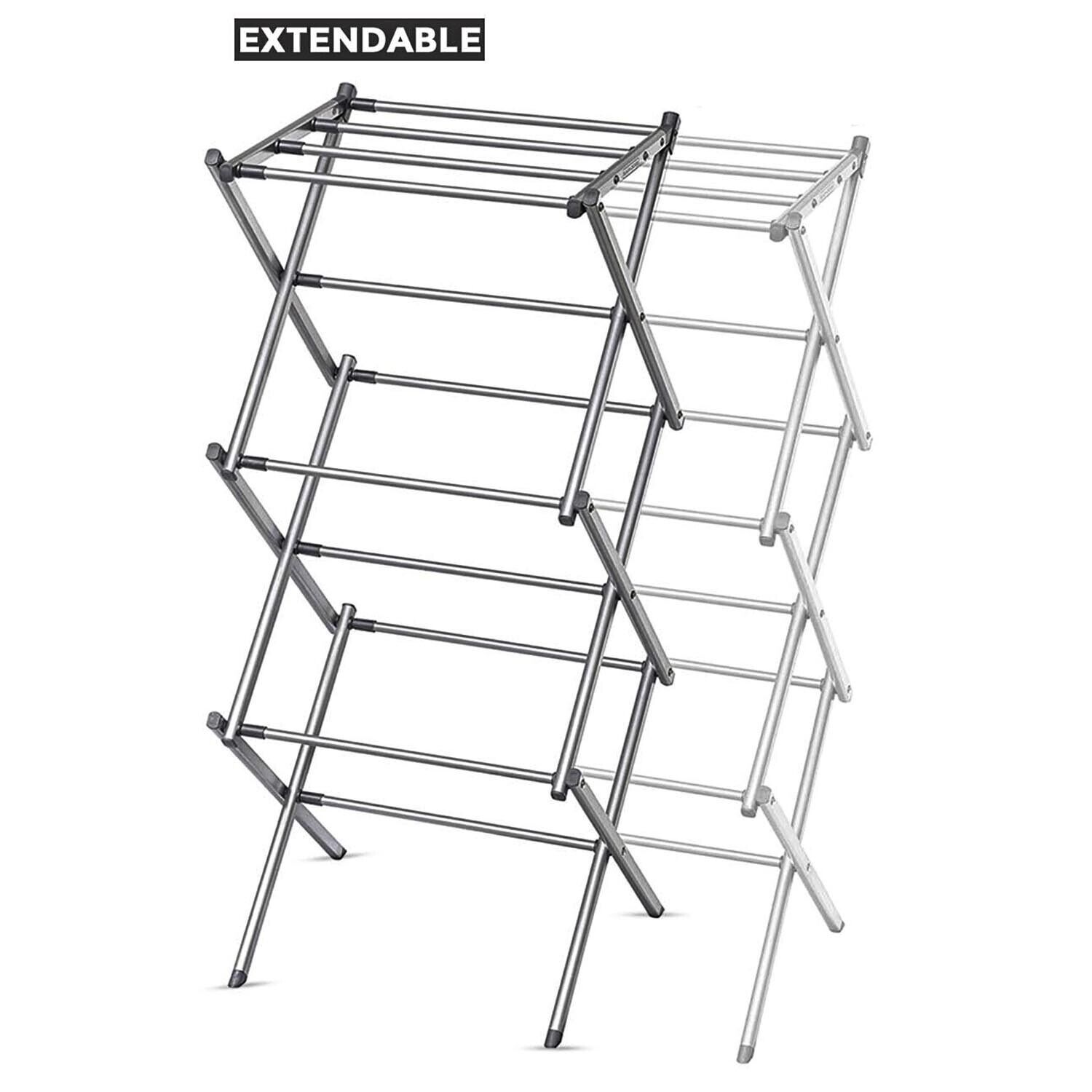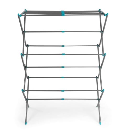 3 Tier Folding Clothes Airer - For Laundry, Indoor And Outdoor | Non-Slip Feet & Corner Spaces for Hangers | Foldable Drying Rack, Lightweight, Space Saving Washing Line - Home Storage