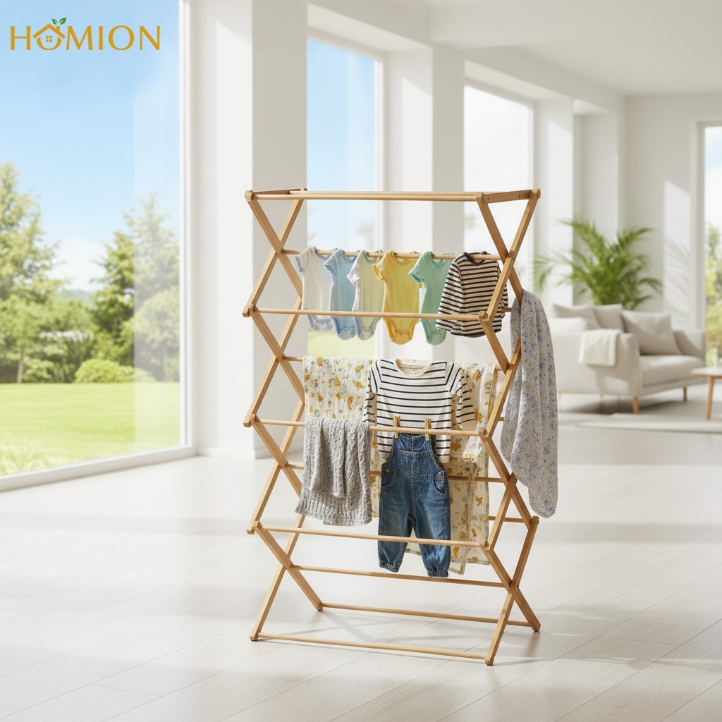 4 Tier Bamboo Cloth Dryer Airer Foldable Laundry Rack Washing Line Drying Horse