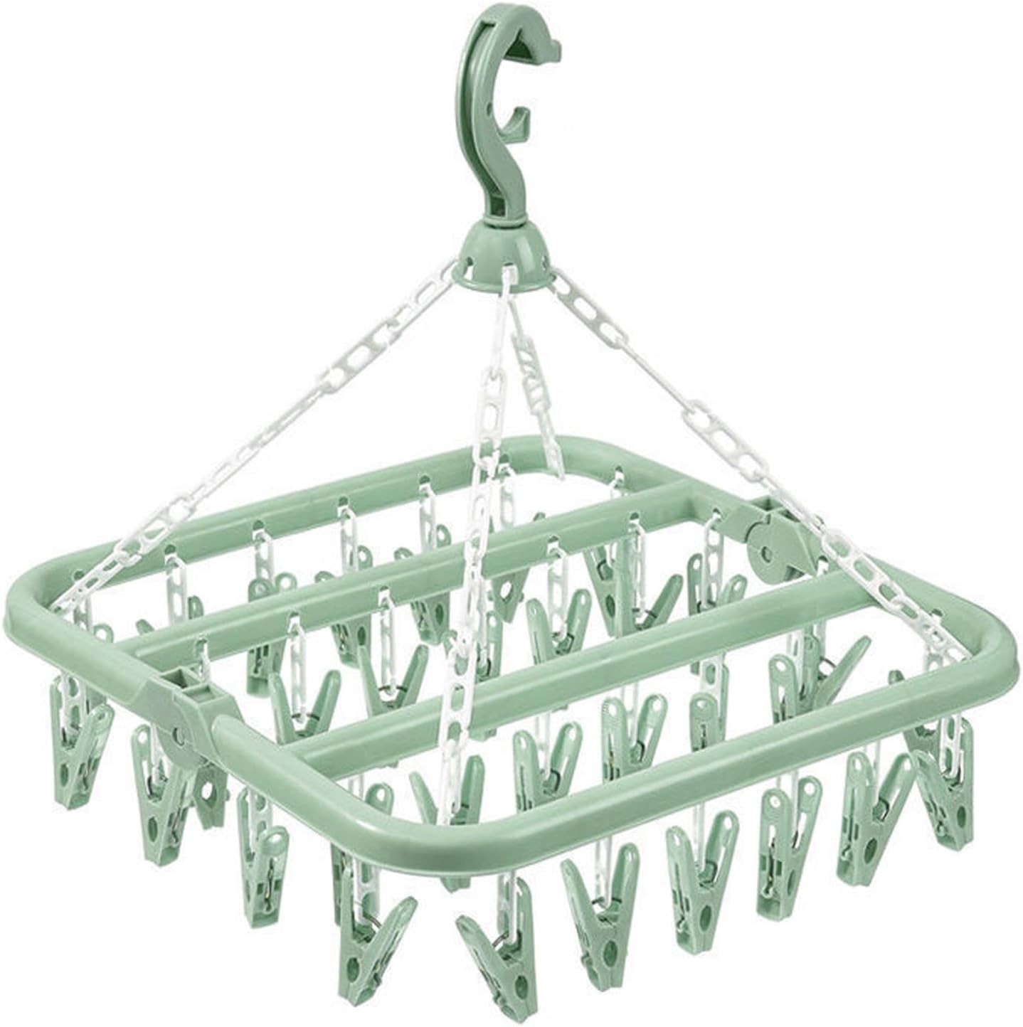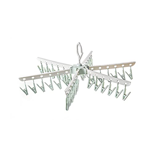 hautllaif Clothes Drying Hanger with 32 Clips, Foldable Design Multi-Functional Sock Dryer and Rotary Wind-sock hanger for washing line, Ideal Hanger for Socks, Underwear, Bras, Baby Clothes (Green)