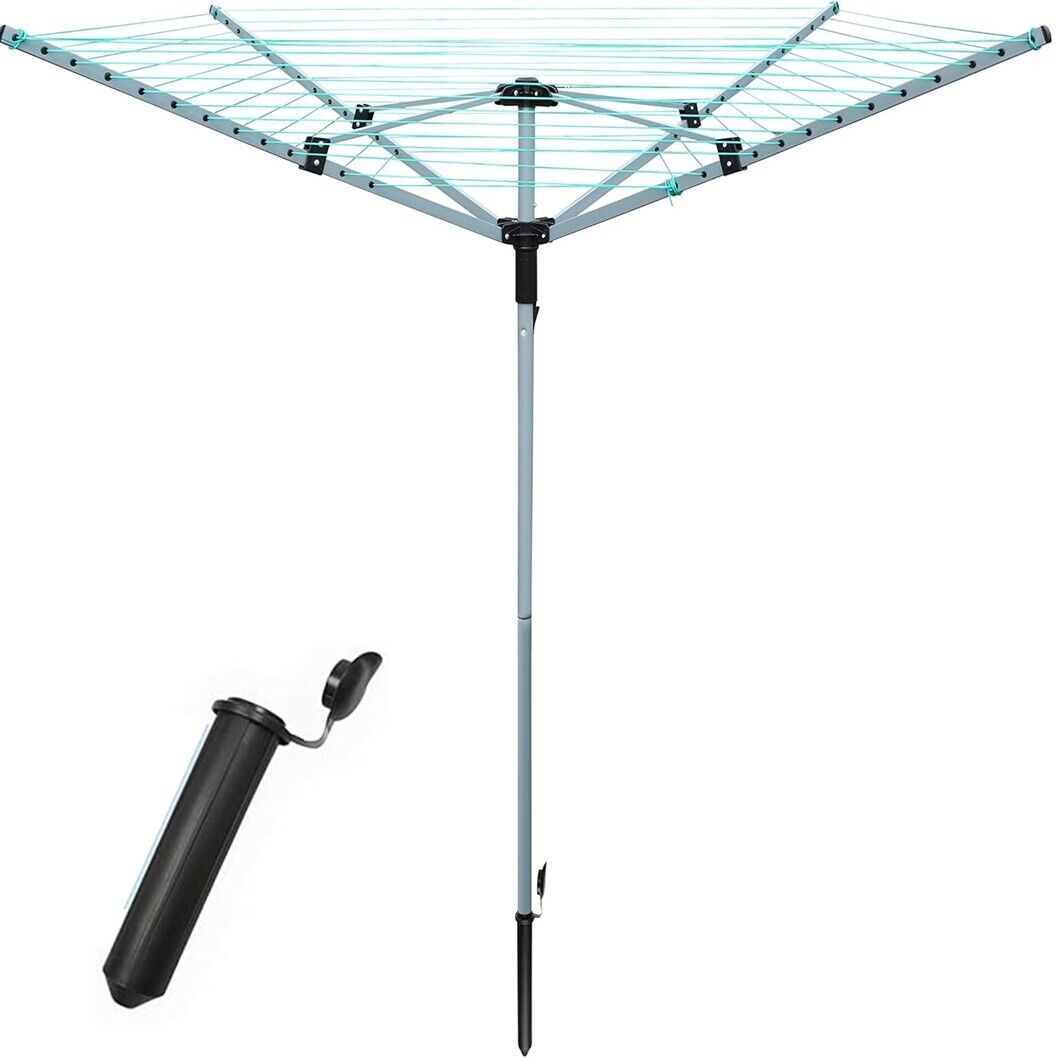 4 ARM ROTARY WASHING LINE 50M DRYING AREA GARDEN CLOTHES AIRER OUTDOOR FOLDABLE