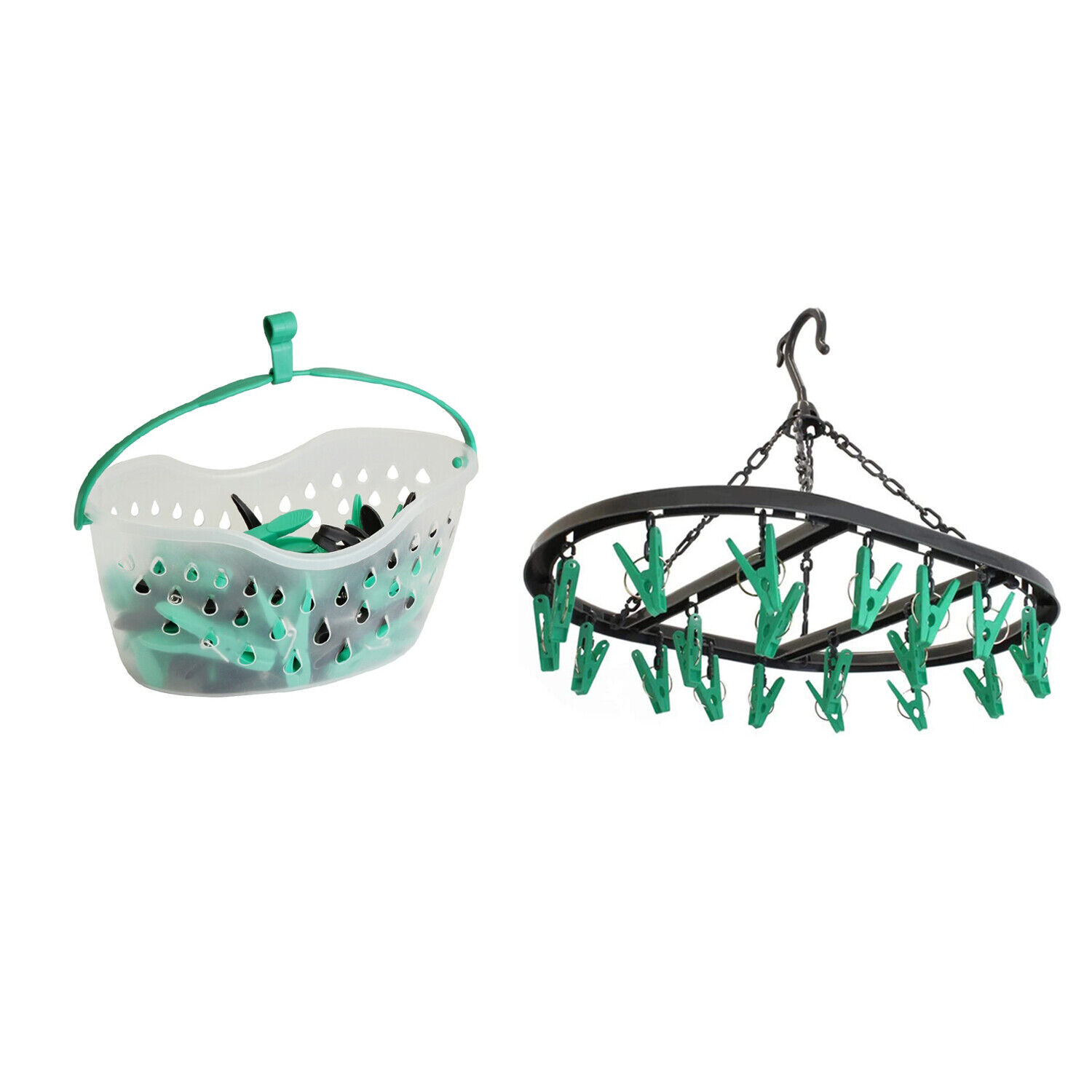 20 Peg Foldable Sock Dryer + Peg Basket Oval Shaped Clothes Hanging Washing Line