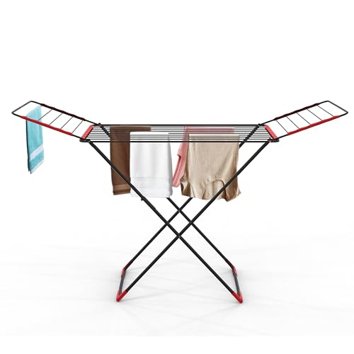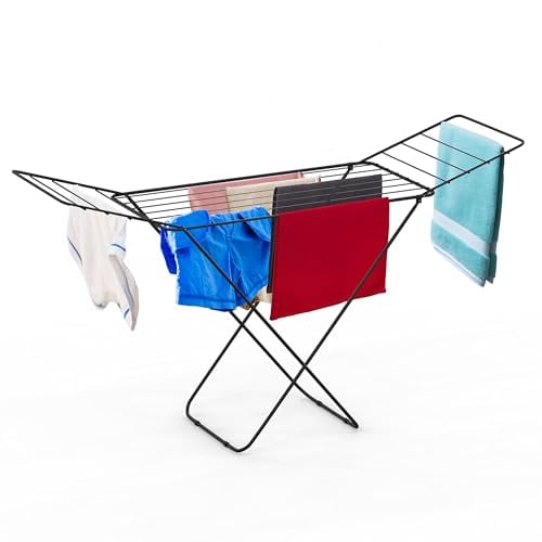 Vivo Technologies Clothes Airer Drying Rack Winged Drying 18M Indoor Outdoor Laundry Washing Line,Metal Foldable Laundry Drying Horse Rack,Clothes Dryer Rack for Indoor & Outdoor 182x50x100cm