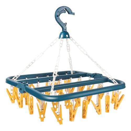 hautllaif Clothes Drying Hanger with 32 Clips, Foldable Design Multi-Functional Sock Dryer and Rotary Wind-sock hanger for washing line, Ideal Hanger for Socks, Underwear, Bras, Baby Clothes (Blue)