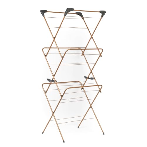 Beldray LA089397GRYEU7 3 Tier Indoor Clothes Airer - Foldable Laundry Drying Rack, Non-Slip, Four Corner Hanger Hooks, Alloy Steel 7kg Max Load, 15M Washing Line Drying Space, Compact Storage, Copper