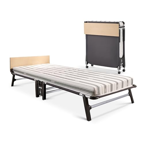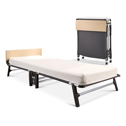 JAY-BE QM80 Quick Folding Bed with Memory Mattress, Single, Roll-Away Guest Bed, 360° Castors, Anti-Tip Legs, Steel Frame Supports 160kg, Slim Foldaway Design Only 26cm Width Folded (Single)