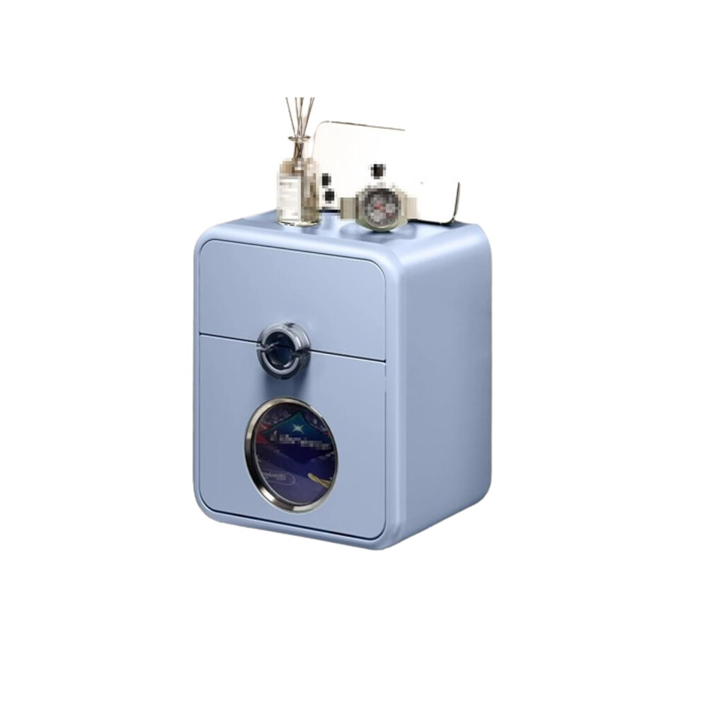 Bathroom Tissue Box, Wall-Mounted Paper Towel Dispenser with Drawer, Storage Compartment, Blue Color for Folded Towels