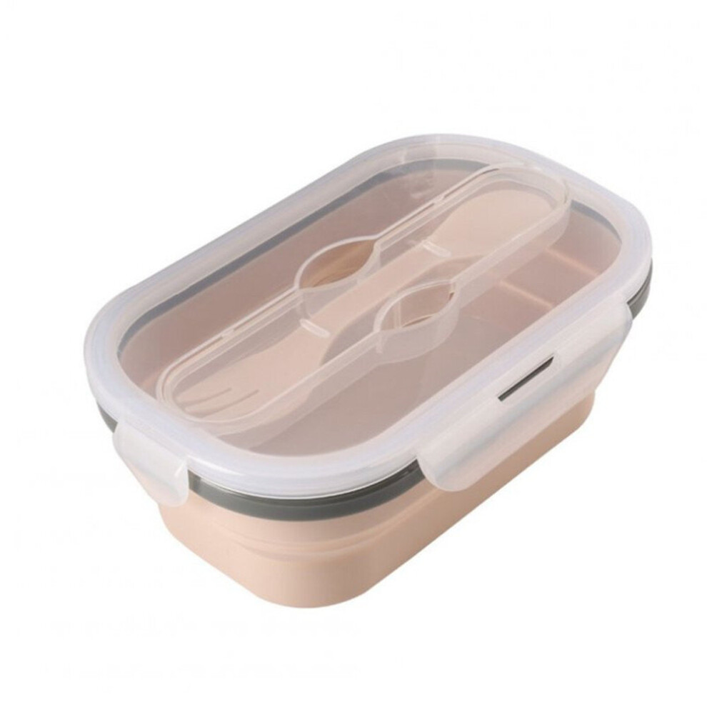 Square Shape Folded Telescopic Silicone Lunch Box Kitchen Food Storage Container Nordic apricot