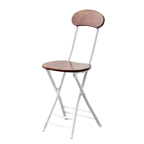 Folding Bar Stools, Folding Chair with Metal Frame, with Back Rest for Breakfast, Office, Kitchen, Desk, Bar (Dark wood grain white frame)