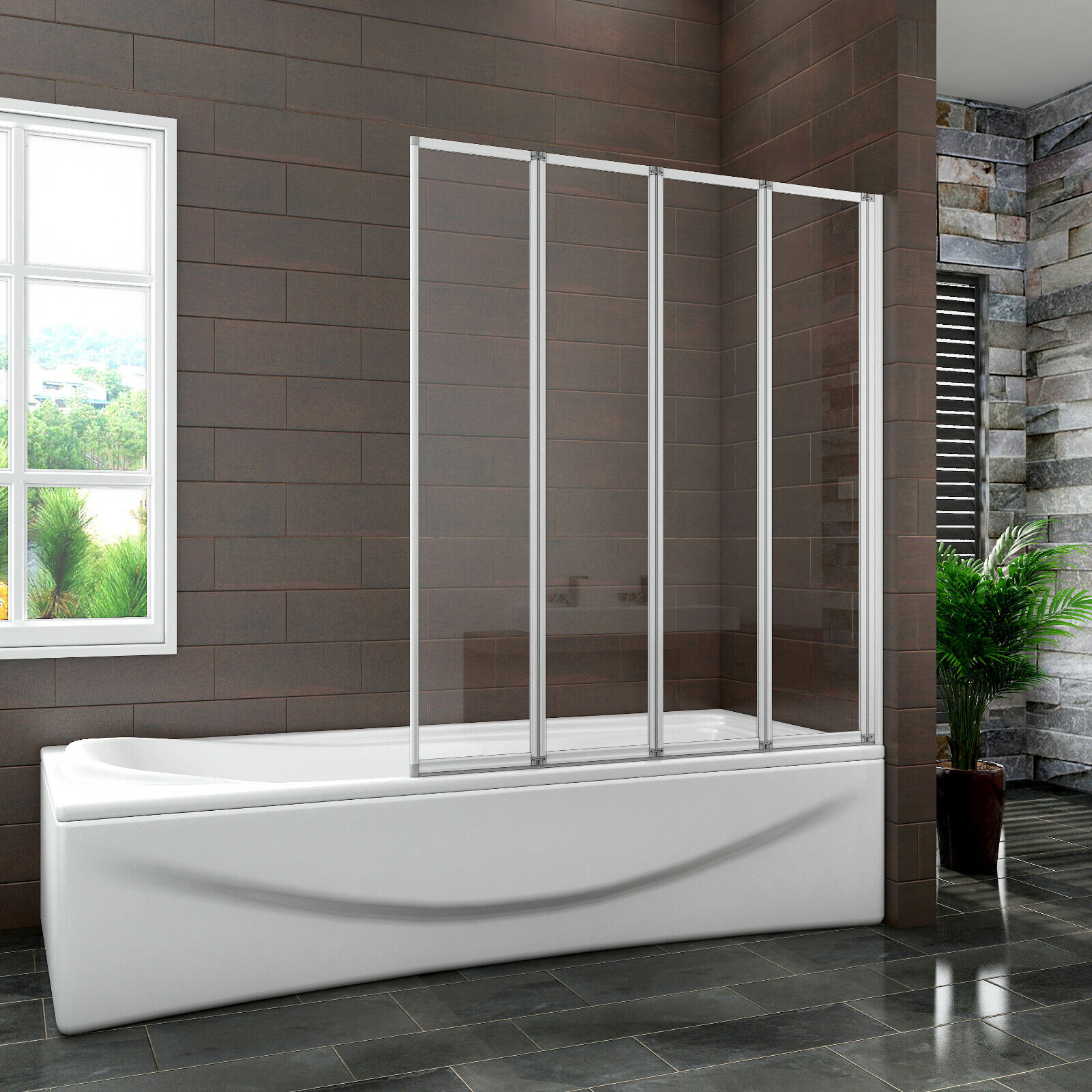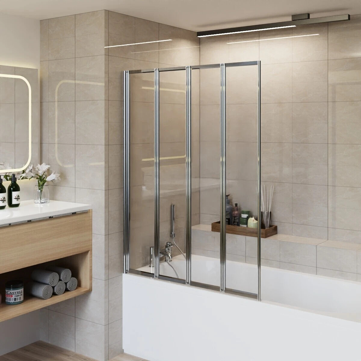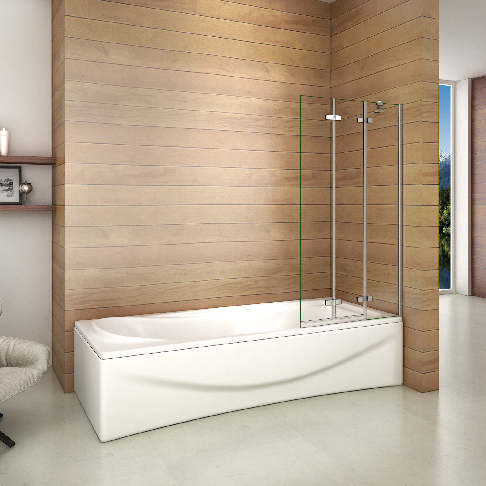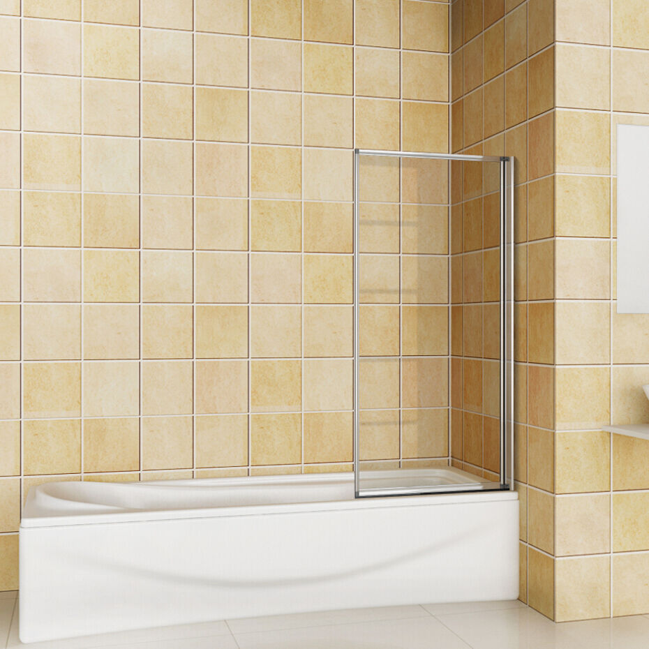 ELEGANT 4 Panel Folding Bath Shower Screen,900mm Over Bath Shower Screen Door Toughened Safety Clear Glass Bathtub Door Pivot Swing Panel