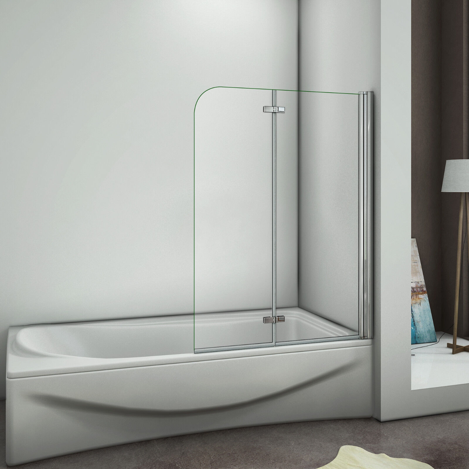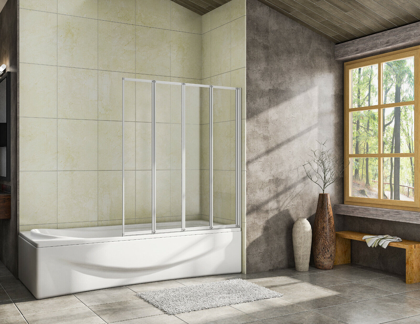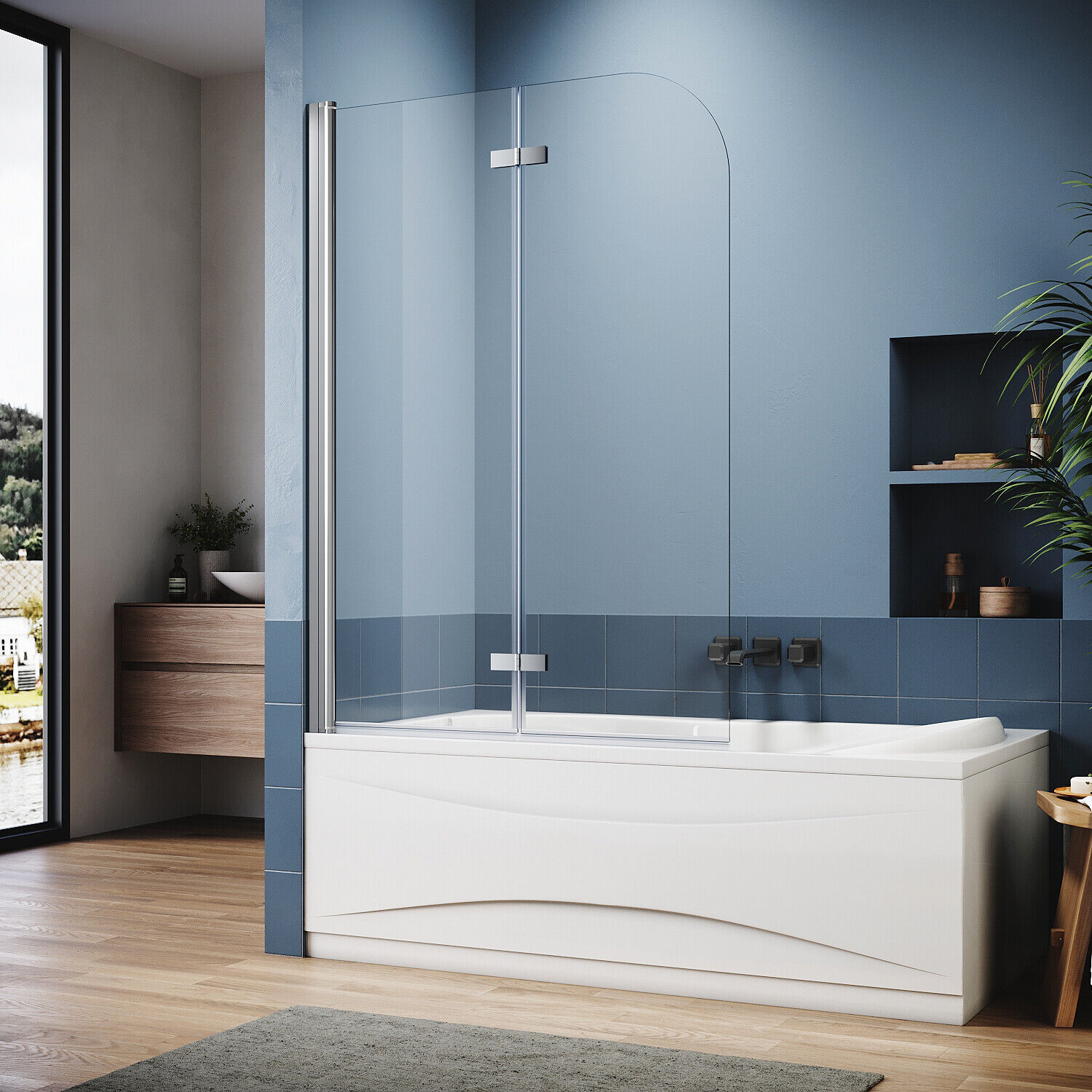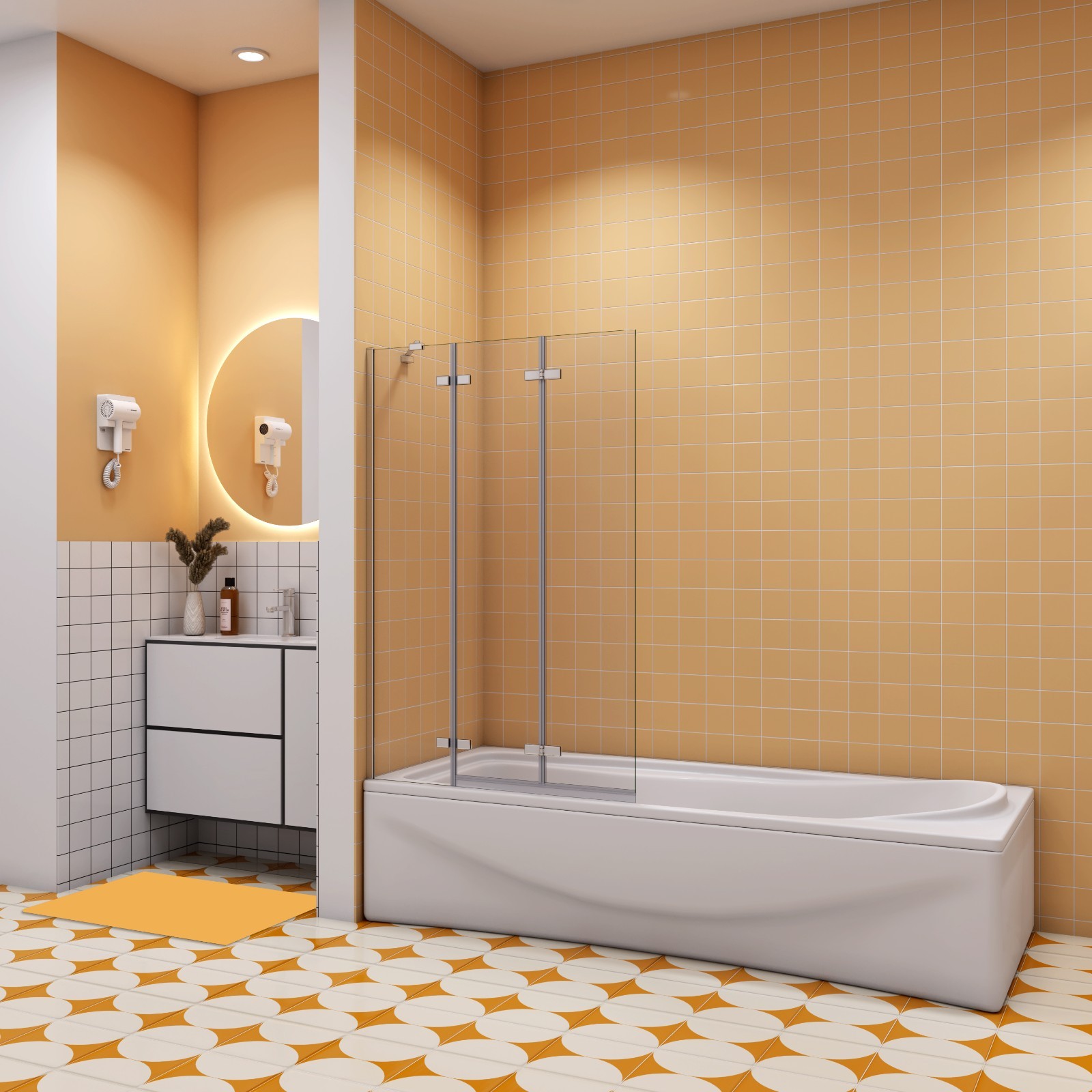 ELEGANT 4 Panel Folding Bath Shower Screen,900mm Over Bath Shower Screen Door Toughened Safety Clear Glass Bathtub Door Pivot Swing Panel