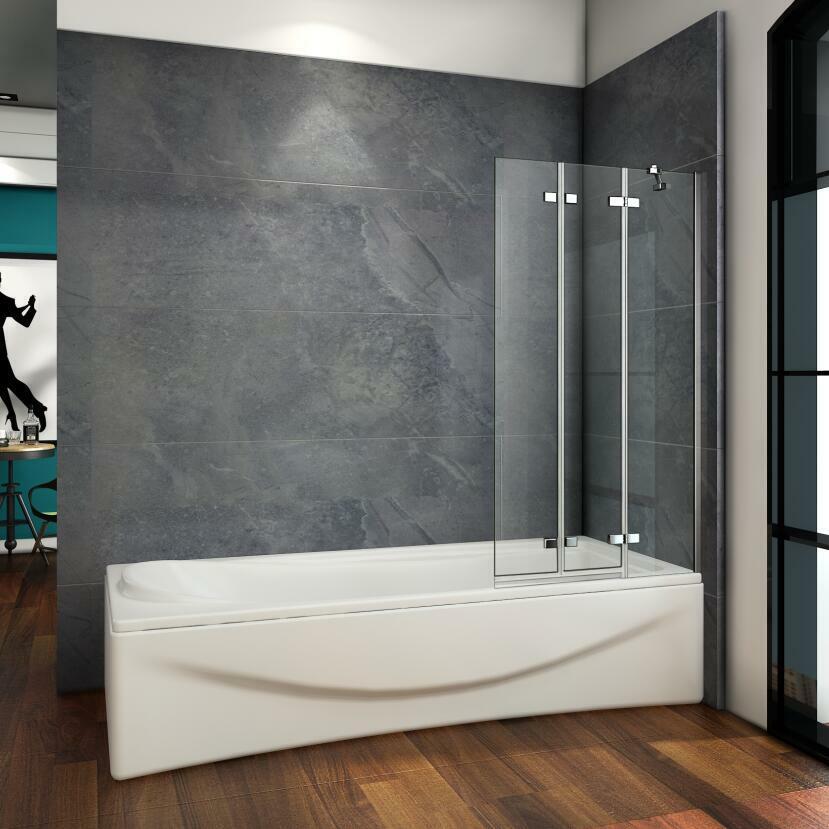 Luxury 1000x1400mm 3 Fold Folding Bath Shower Screen Modern Hinge Glass Panel
