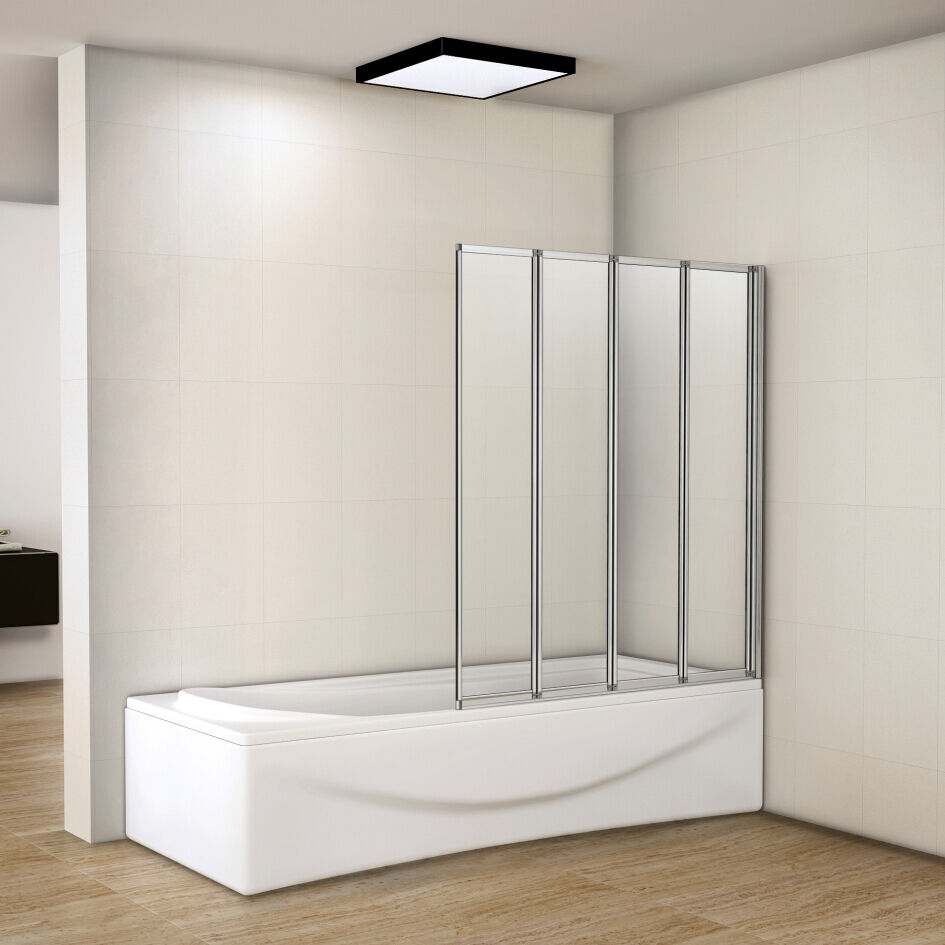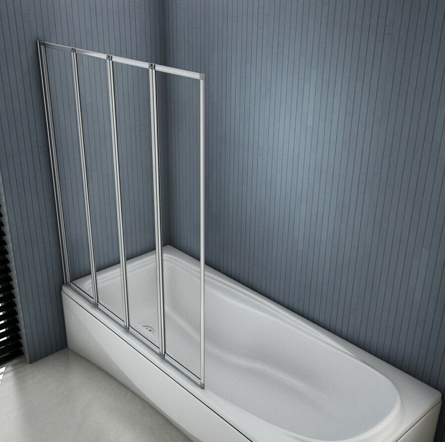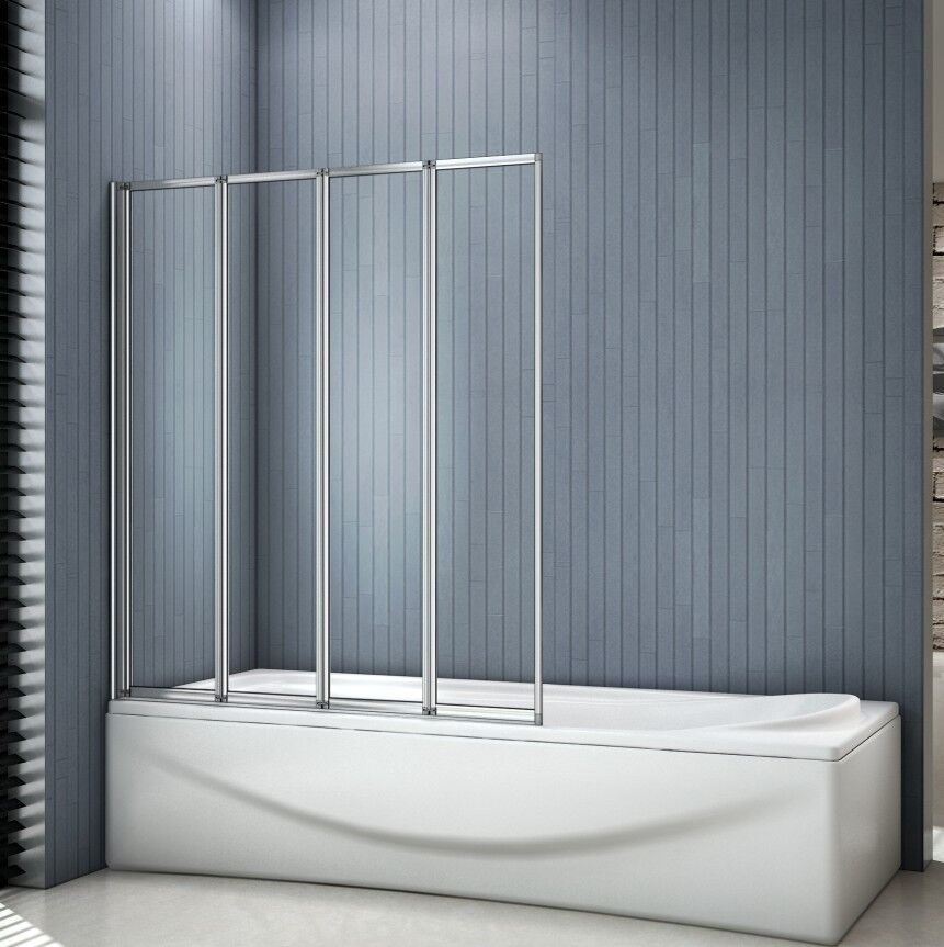 4 Fold Folding Bath Screen Shower Bathroom 4mm Glass Panel 900x1400