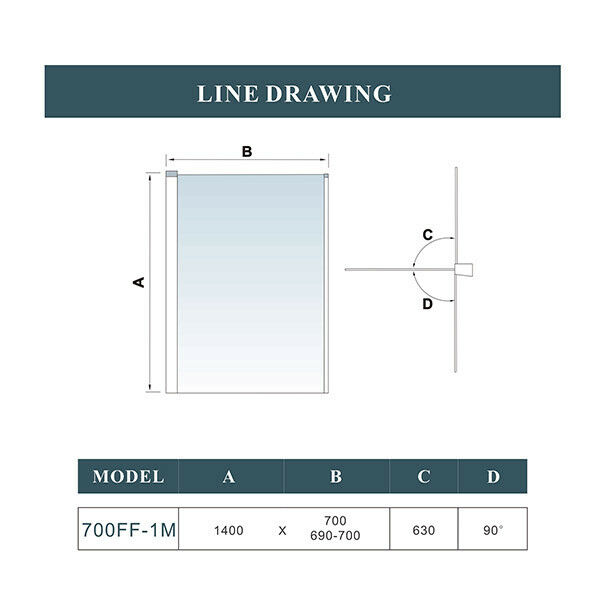 700x1400mm 1 Folding Shower Bath Screen Over Bath Glass Door Panel