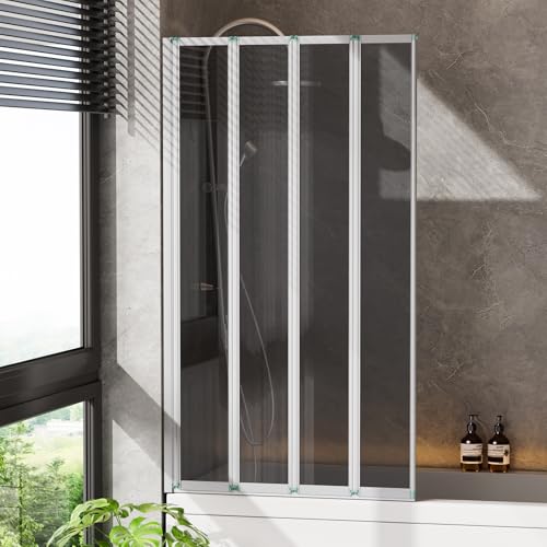 INMOZATA Shower Screen, 4 Panel Folding Bath Shower Screen, Over Bath Shower Screens Tempered Grey Glass Panel Shower Screens(800 * 1400mm,Metallic Silver & grey)