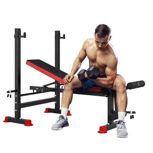 Folding Weight Bench with Squat Rack and Leg Developer, Adjustable Fitness Lifting Benches for Gym, Workout, Preacher Curl Rack, Multi-functional Exercise Equipment 250kg Weight Capacity
