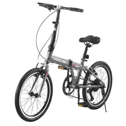 LSLIFE 20 Inch Folding Bike for Adult, 7-Speed Folding Bicycle for Women Men Teens Lightweight Foldable Bike Easy Folding City Bicycle (Grey)