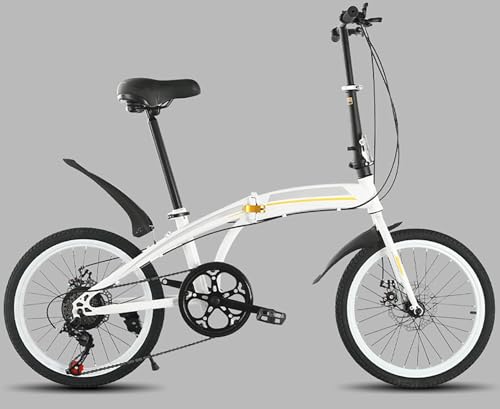 AOOUNGM 20 Inch Folding Bike Adult, Adjustable Height Mountain Bike, 6 Speed Lightweight Alloy Folding Bicycle, Folding Bicycle for Adult Men and Women Teens, City Bike for Children, White