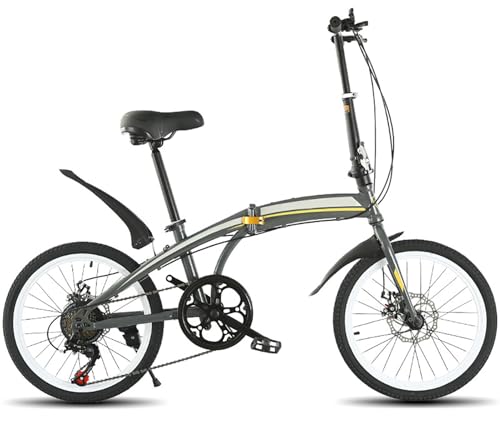 Folding bikes 20 Inch, 6 Speed Folding Bicycle For Men Women High Carbon Steel Frame Lightweight City Bike Compact A,20 Inches