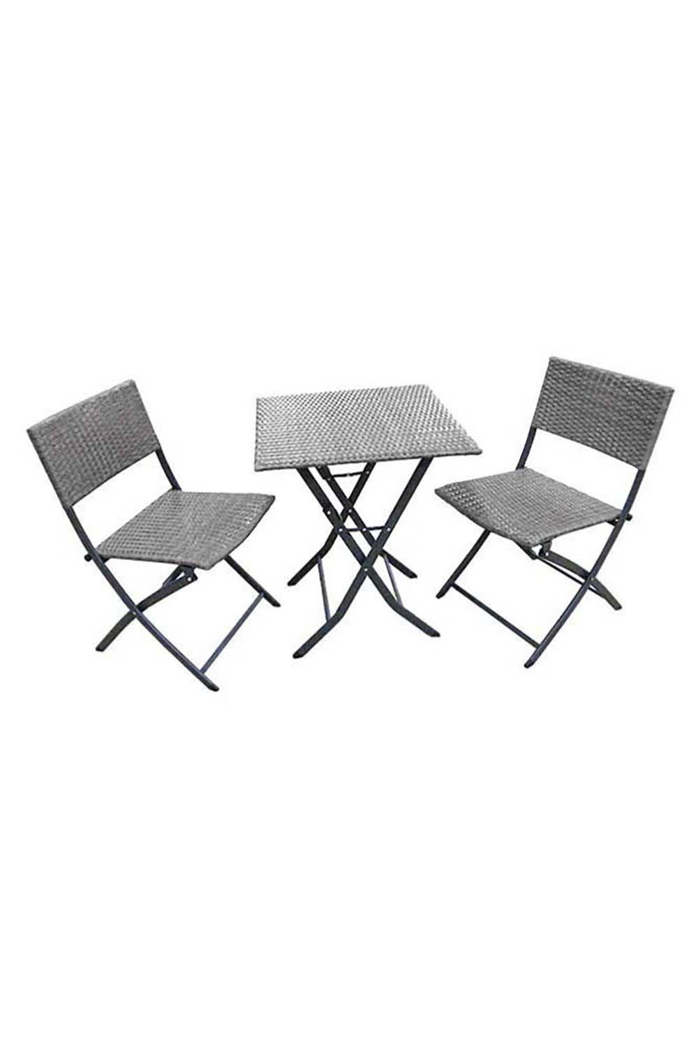 CFODOJ Outdoor Outdoor Furniture Sets-home-3 Piece Folding Bistro set with Dark Grey Cushions Bamboo