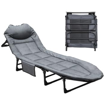 Holdfiturn Camping Bed, Sun Lounger Folding Camp Bed with Pillow, Heavy Duty Camp Bed with Non-Slip Foot Pads,4-Position Adjustable Backrest for Outdoor Sleeping, Hiking, Travel