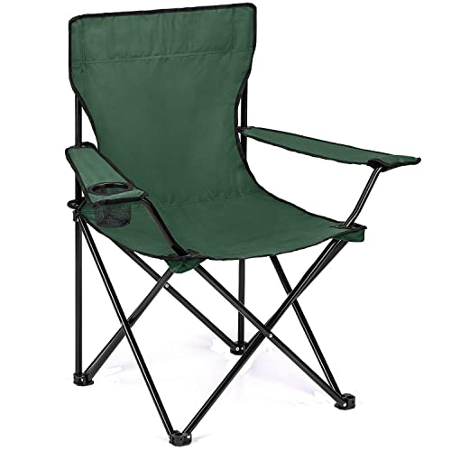 Folding Camping Chairs With Armrest and Cup Holder Lightweight Outdoor Patio Garden Beach Chair Portable Comfortable Seat for Camping Fishing Parties Travel Picnic Barbecue with Carrying Bag (Green)