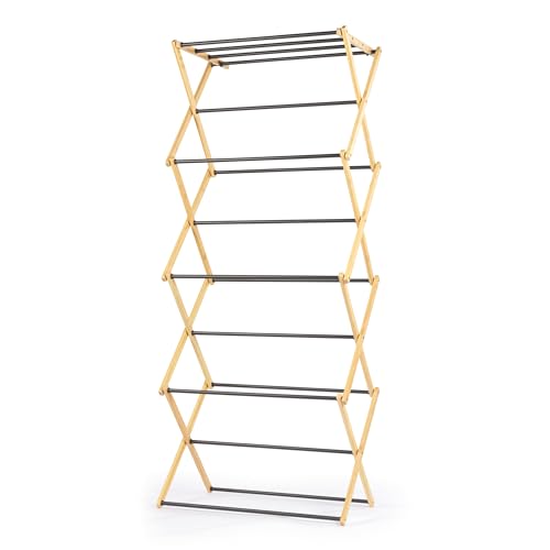 Beldray 4 Tier Folding Clothes Airer – Strong Bamboo Frame, Sturdy Steel Bars, Max Load 15kg, Lightweight, Compact Storage, 8M Drying Space For Heavy Towels & Bed Sheets, Foldable Concertina Design