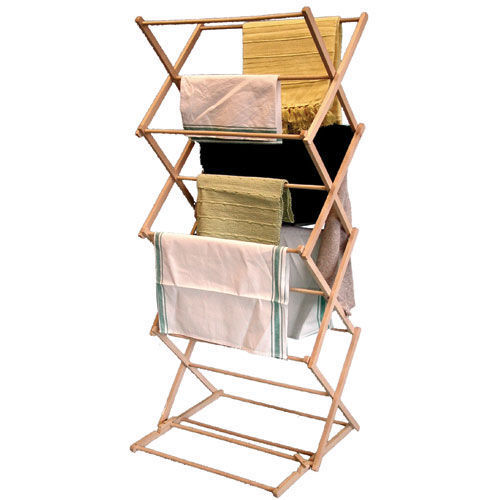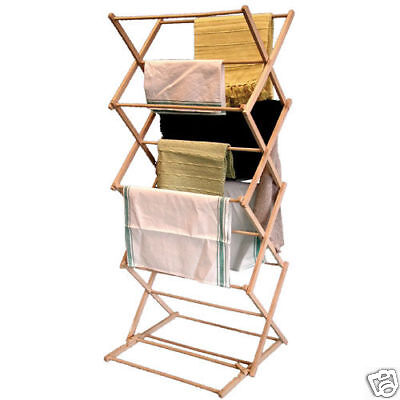 WOOD WOODEN FOLDING CONCERTINA CLOTHES AIRER HORSE DRIER DRYER RAIL STAND RACK