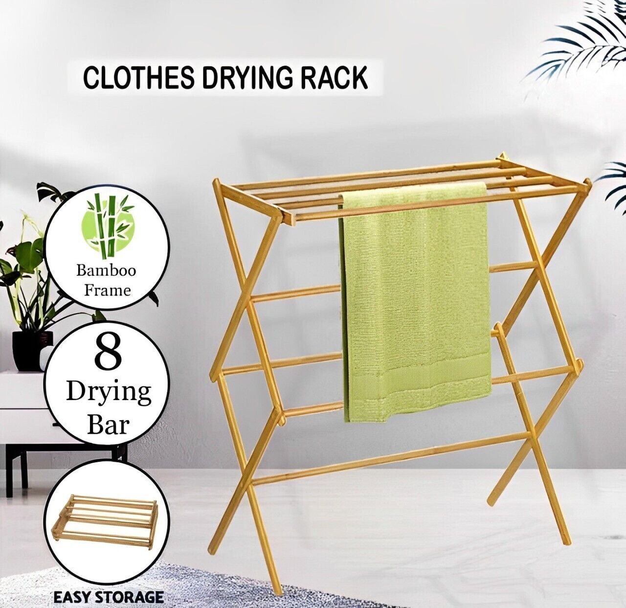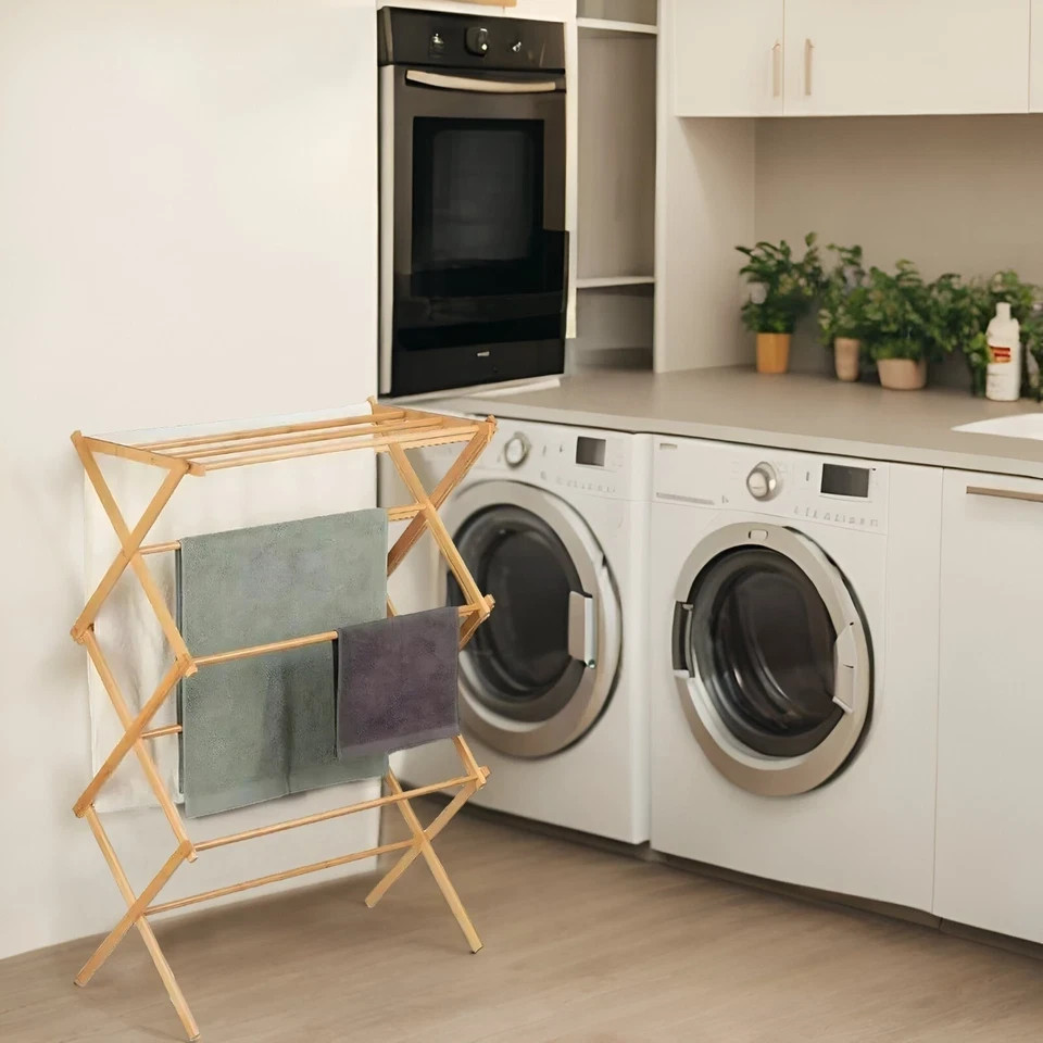 2 Tier Bamboo Wooden Folding Concertina Clothes Airer Horse Vintage Traditional