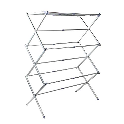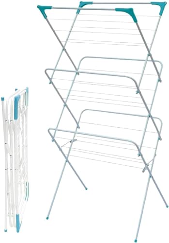 3 Tier Folding Clothes Airer - For Laundry, Indoor And Outdoor | Non-Slip Feet & Corner Spaces for Hangers | Foldable Drying Rack, Lightweight, Space Saving Washing Line - Home Storage