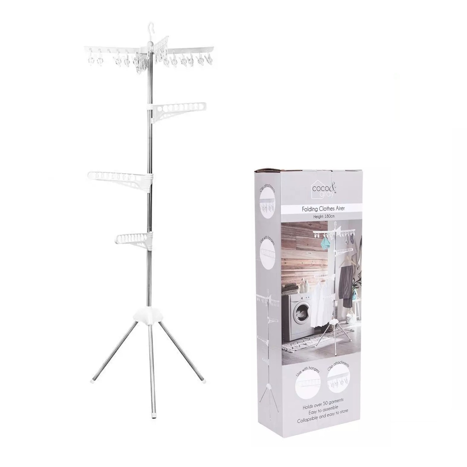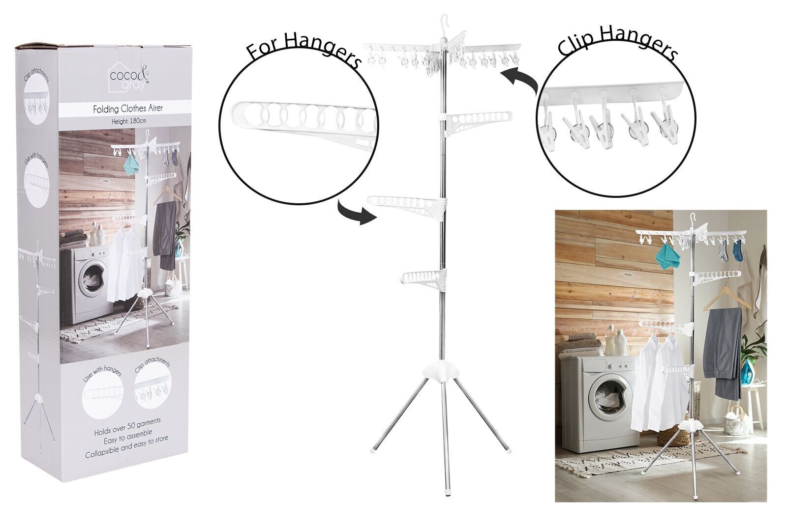 Folding Clothes Airer Tripod Laundry Drying Rack Hangers Clips Pegs Maiden Horse