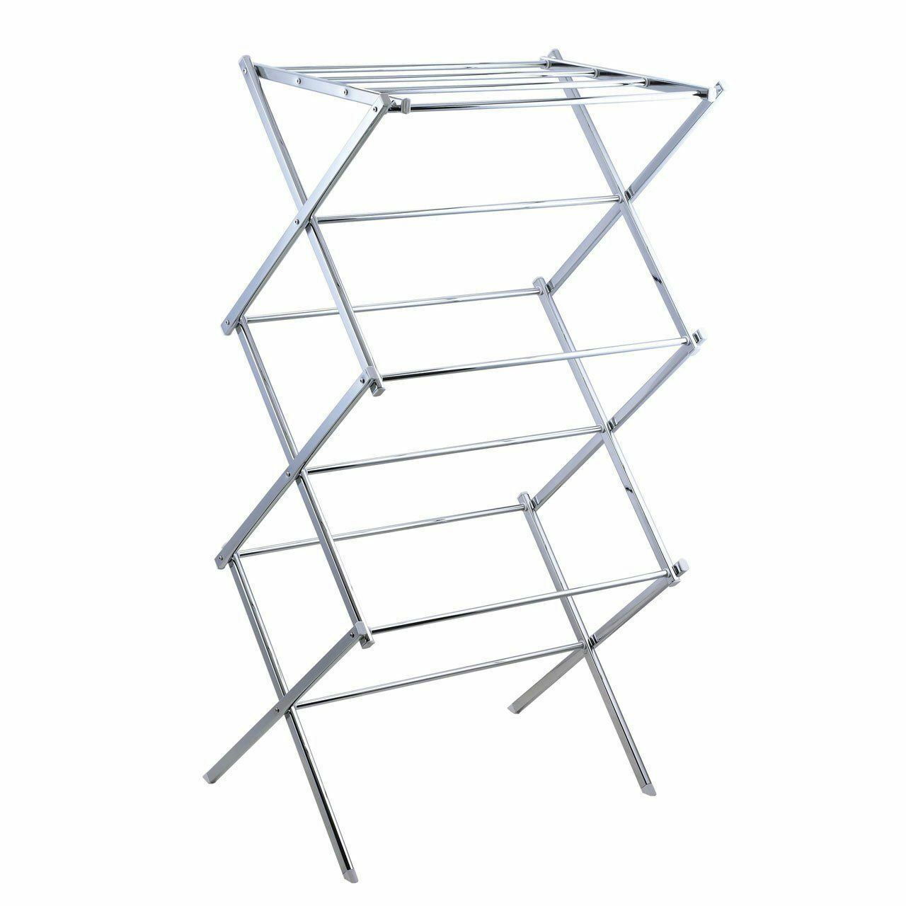 FREE STADNING 3 TIER METAL CHROME FOLDING CLOTHES AIRER HORSE LAUNDRY DRYER