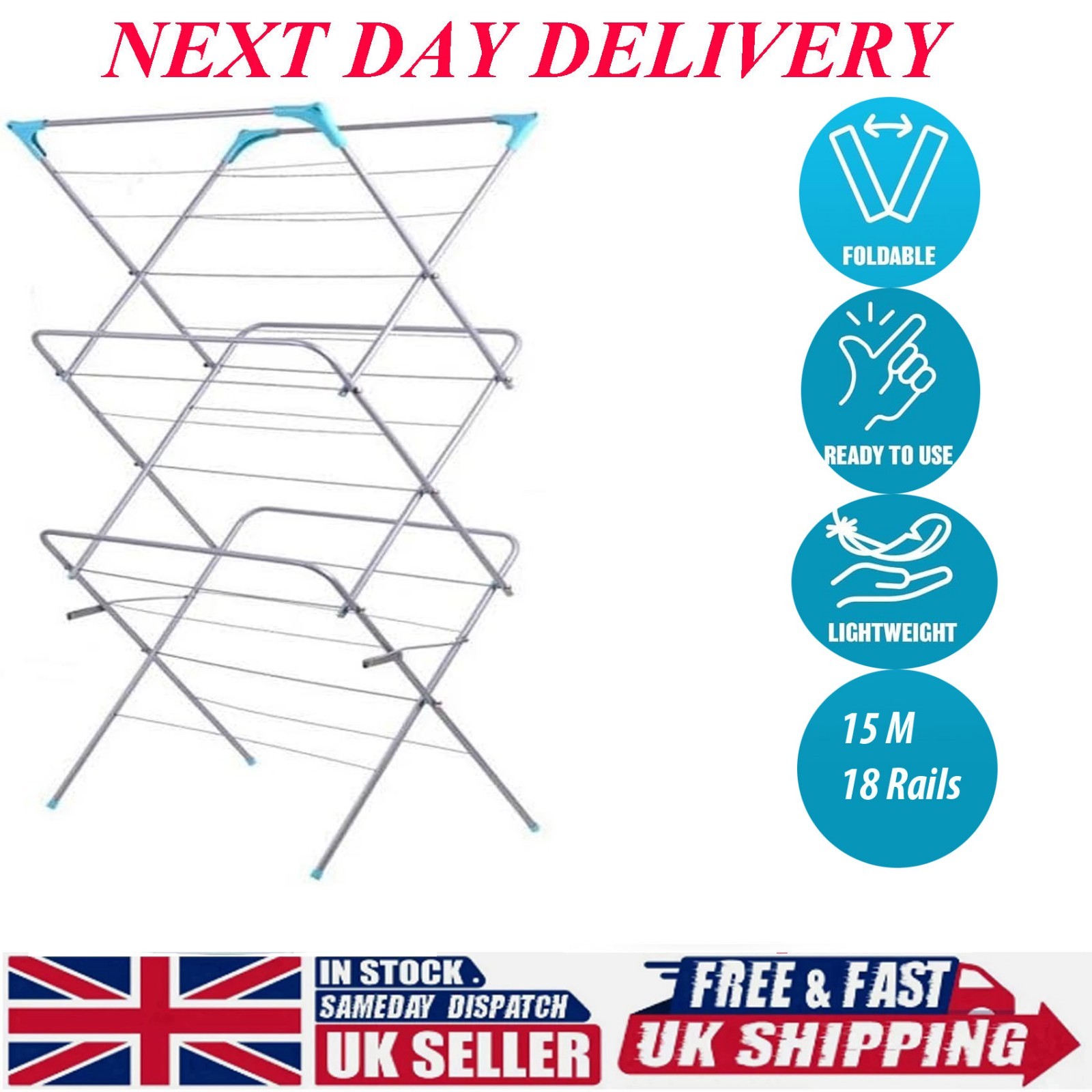 FOLDING CLOTHES AIRER CLOTHING DURABLE STRONG SPACE SAVING WASHING RACK 15M