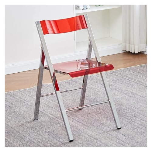 VMDVBNA Folding Chair Stainless Steel Folding Dining Chairs,Living Room Fold Backrest Table Chair,Bedroom Makeup Stool(Plating red)