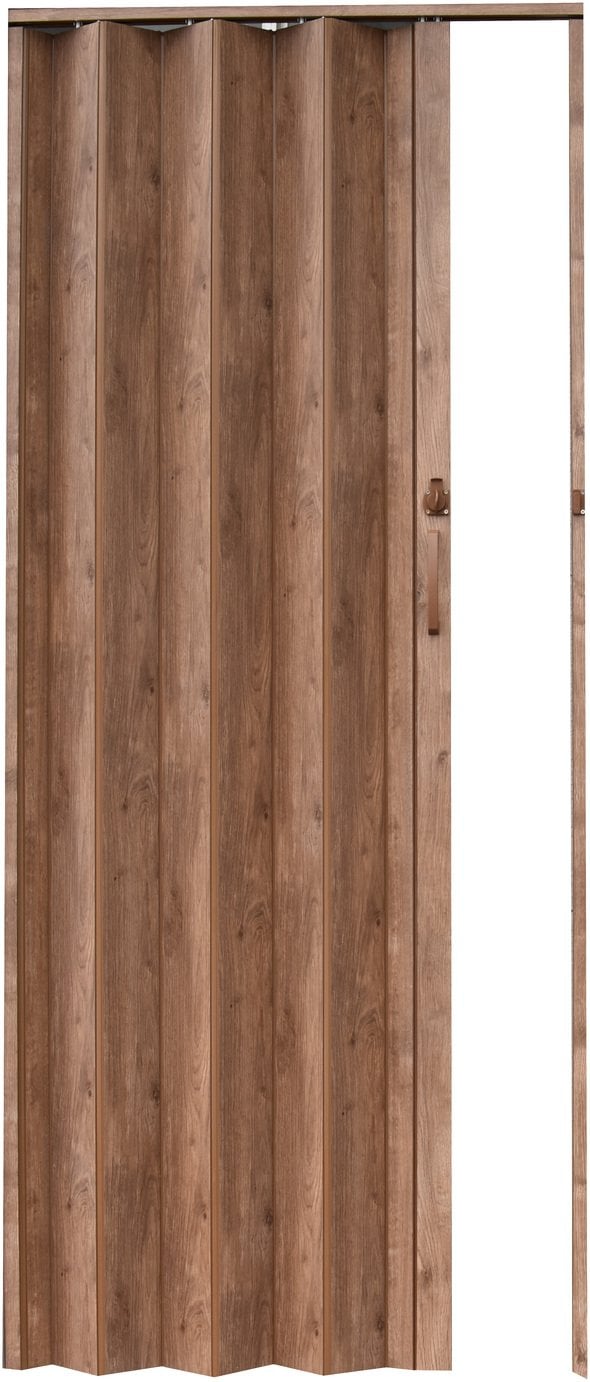 tectake® Internal Folding Door, 80 x 203 cm, Water-Resistant & Durable PVC, Foldable Sliding Door with Magnetic Closure & Handles, Space-Saving Concertina Door Suitable as Room Divider - Walnut