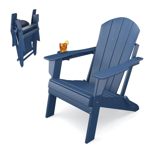 Sleek Space Adirondack Folding Chair for Garden, Patio or Deck - Arm Rests and Cup Holder - Lightweight, Weatherproof - Stylish, Durable Outdoor Furniture for Fire Pit, Beach, Poolside, Porch (Navy)